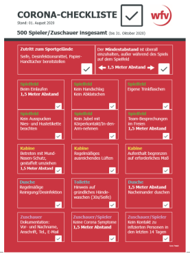 Damit die Vereine für die kommende Saison sowie für die ersten Freundschaftsspiele in Sachen Hygiene gewappnet sind, stellt der wfv neben einem entsprechenden Hygienekonzept auch ein Checkliste zur Verfügung, um alle konkreten Schritte nach und nach leichter abzuarbeiten.