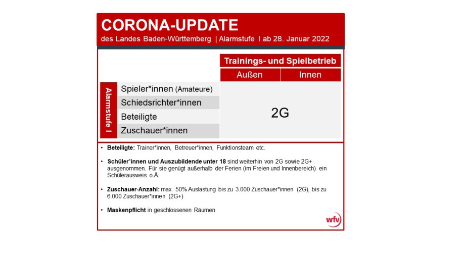 Die Vorgaben zur Datenerhebung durch Veranstalter wurden weitestgehend aufgehoben. In Sportstätten und Sportanlagen müssen keine Kontaktdaten mehr erfasst werden, weder im Trainings- noch im Spielbetrieb. Die Nutzung der Corona-Warn-App wird hingegen weiterhin ausdrücklich empfohlen. In der Alarmstufe I, in der wir uns aktuell befinden, gilt für Zuschauer*innen von Sportveranstaltungen nach wie vor die 2G-Regelung. Der Impf- oder Genesenen-Nachweis muss beim Zutritt vom Veranstalter geprüft werden.